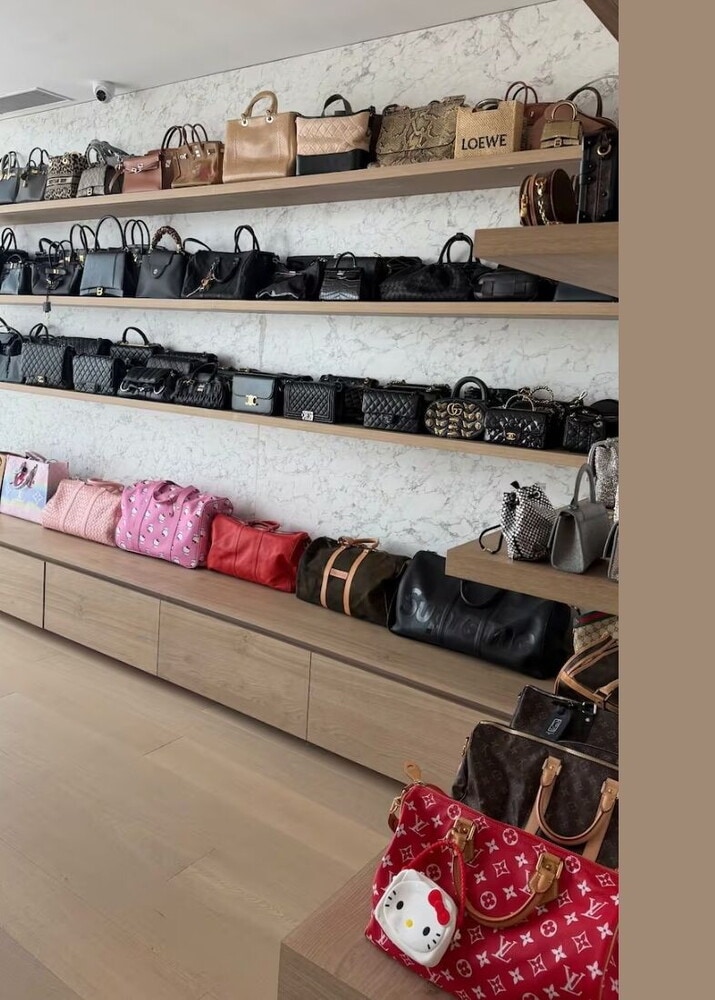 Wanda Nara ha condiviso altre immagini della sua nuova casa in Argentina. Tra gli spazi più rappresentativi spicca la cabina armadio, concepita come un vero e proprio ambiente a sé: essenziale nel design, dominata da legno chiaro e marmo, è organizzata con mensole illuminate che ospitano borse e accessori di grandi maison internazionali - da Hermès a Chanel, passando per Louis Vuitton e Dior - disposti con ordine per dimensione e cromia.