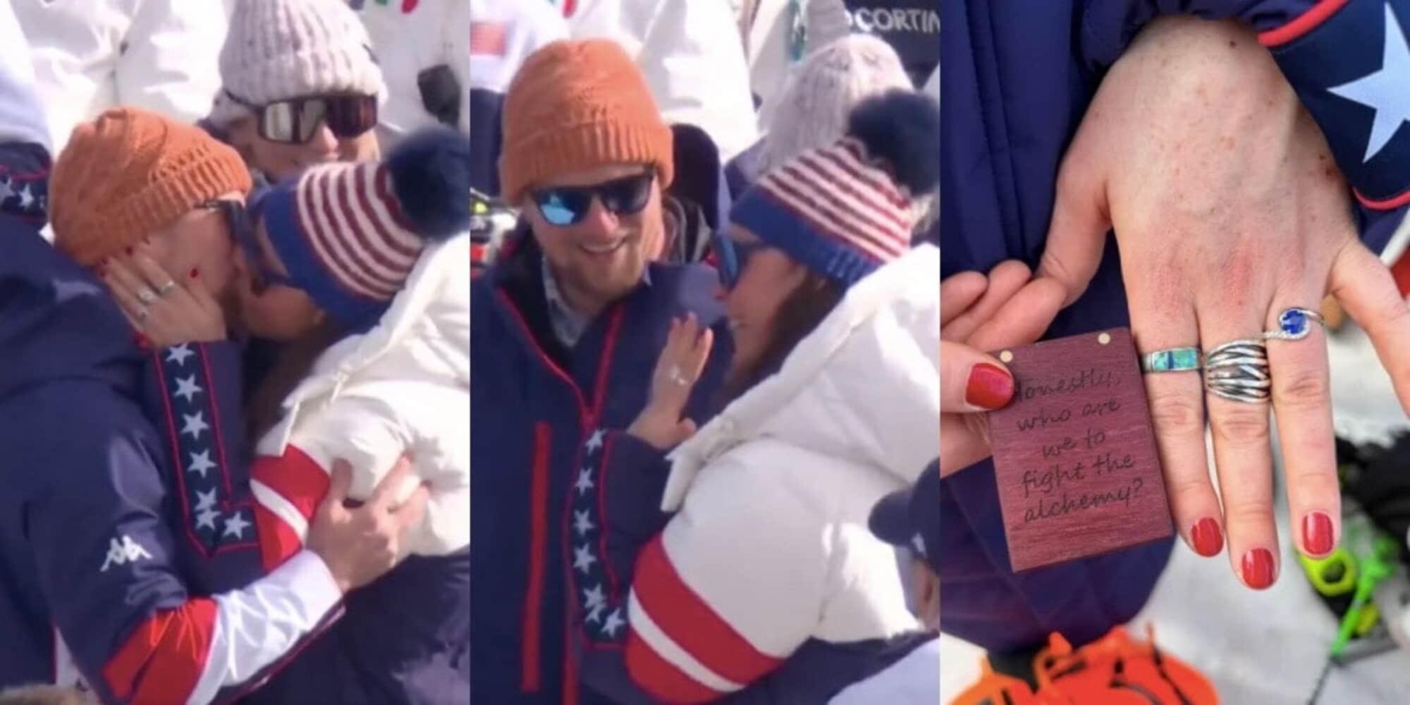Breezy Johnson, oro nella discesa libera, ha aggiunto un altro gioiello alla sua collezione, forse quello più importante. No, non si tratta di un'altra medaglia, quella è sfumata nella finale del SuperG quando è caduta e ha spianato la strada al primo posto della nostra Federica Brignone. In compenso, però, la statunitense alla fine della gara ha ricevuto la proposta di matrimonio da parte del fidanzato Connor Watkins.
